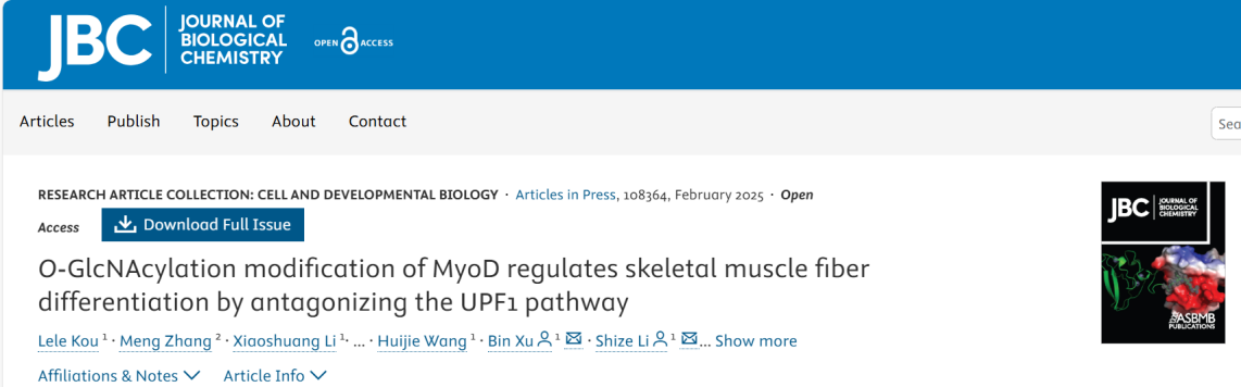 论文链接:O-GlcNAcylation modification of MyoD regulates skeletal muscle fiber differentiation by antagonizing the UPF1 pathway - Journal of Biological Chemistry (jbc.org)