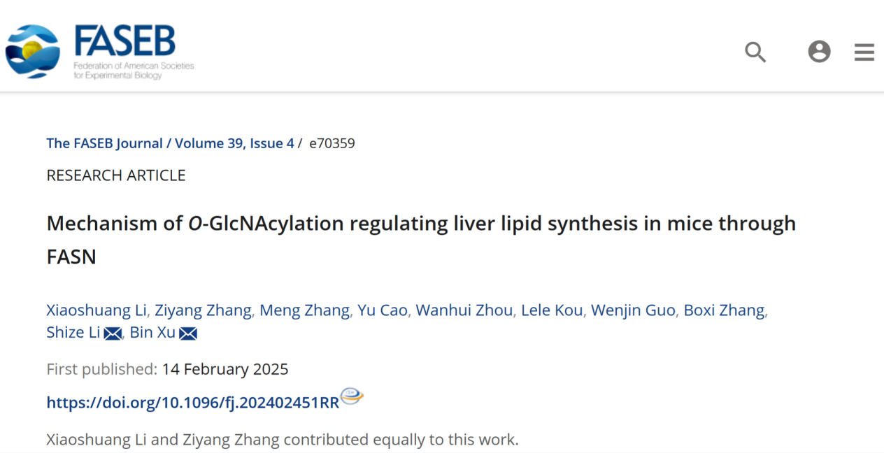 论文链接:Mechanism of O‐GlcNAcylation regulating liver lipid synthesis in mice through FASN - Li - 2025 - The FASEB Journal - Wiley Online Library