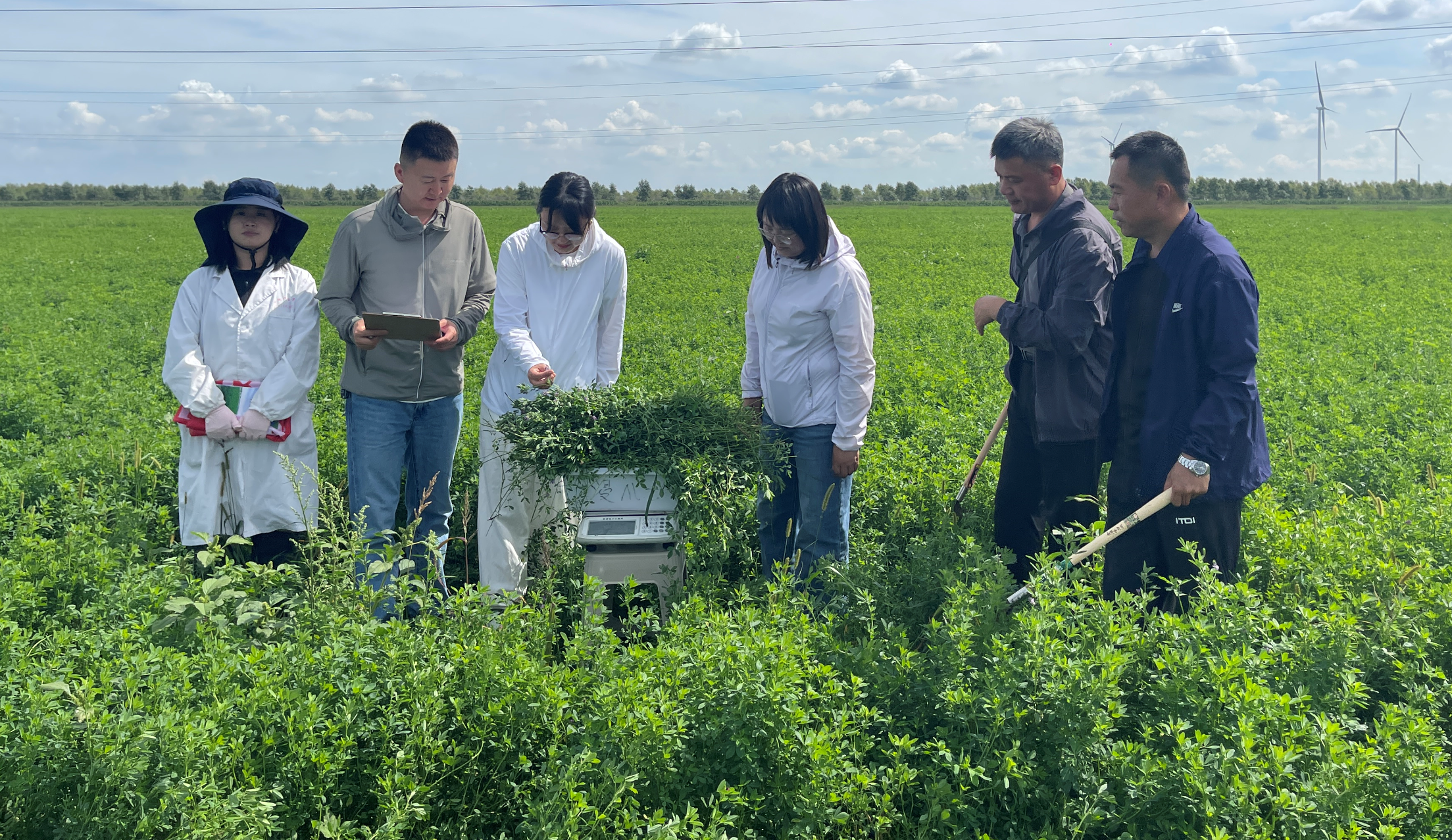 为进一步推进“草原区苜蓿病害高效防治技术推广与示范”项目的高效实施,2025年8月27日,由来自东北农业大学和黑龙江省农业科学的专家组,对公司草学系杨伟光教授承担的2023年中央财政林业科技推广示范项目《草原区苜蓿病害高效防治技术推广与示范》示范基地开展现场测产及病害调查评估工作。