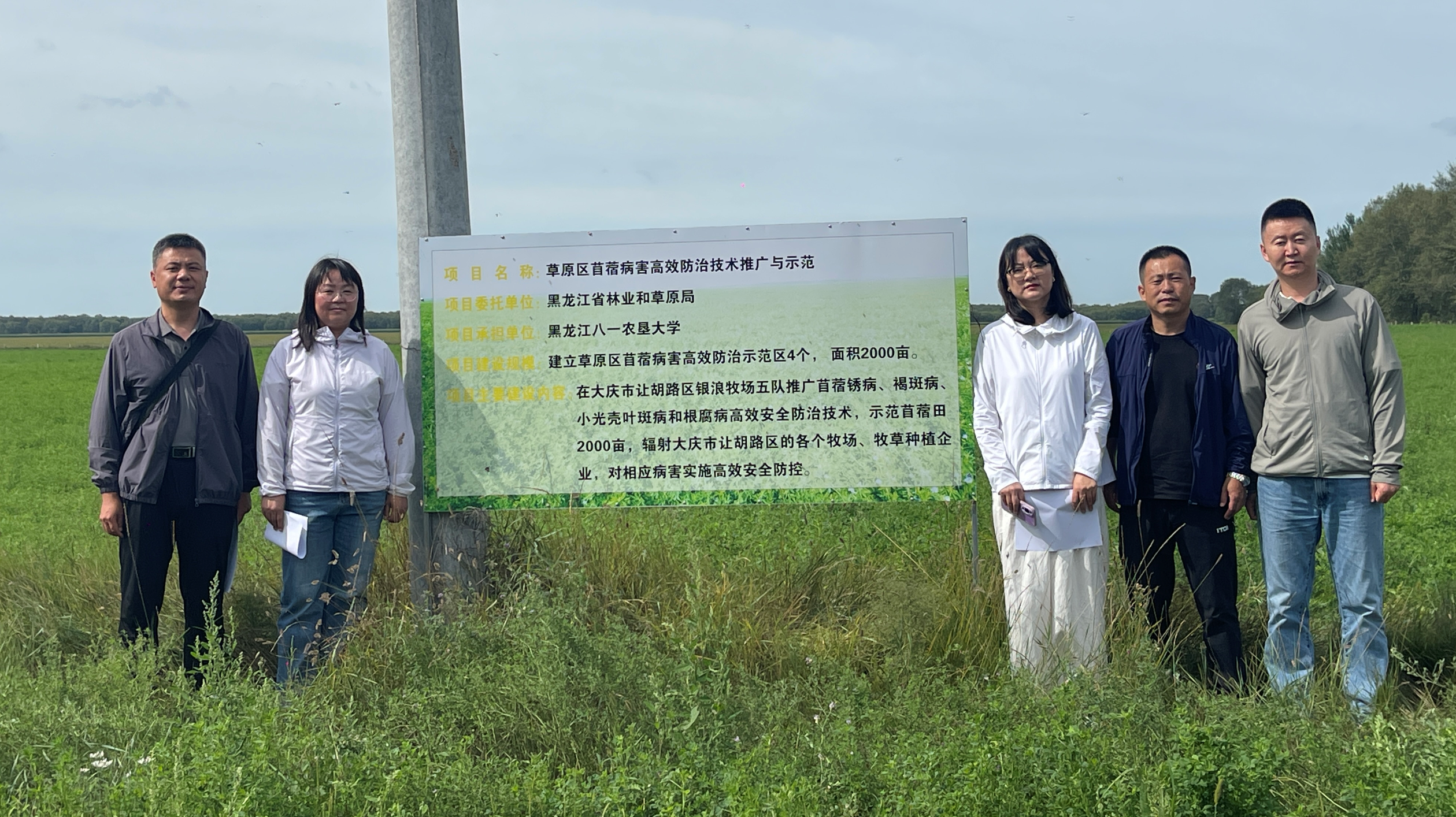 为进一步推进“草原区苜蓿病害高效防治技术推广与示范”项目的高效实施,2025年8月27日,由来自东北农业大学和黑龙江省农业科学的专家组,对公司草学系杨伟光教授承担的2023年中央财政林业科技推广示范项目《草原区苜蓿病害高效防治技术推广与示范》示范基地开展现场测产及病害调查评估工作。