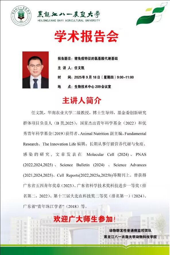 猪免疫特征的氨基酸代谢基础-任文凯教授做专题报告