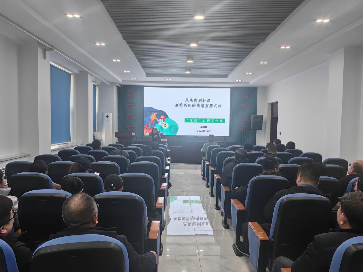 10月22日,学院特邀“沐光”心理工作室负责人王晓琦以“高校教师的情绪重塑之旅”为主题,为学院教职工带来了一场兼具理论深度与实践指导的心理讲座。旨在关爱教职工心理健康,帮助教师缓解工作与生活中的双重情绪压力。