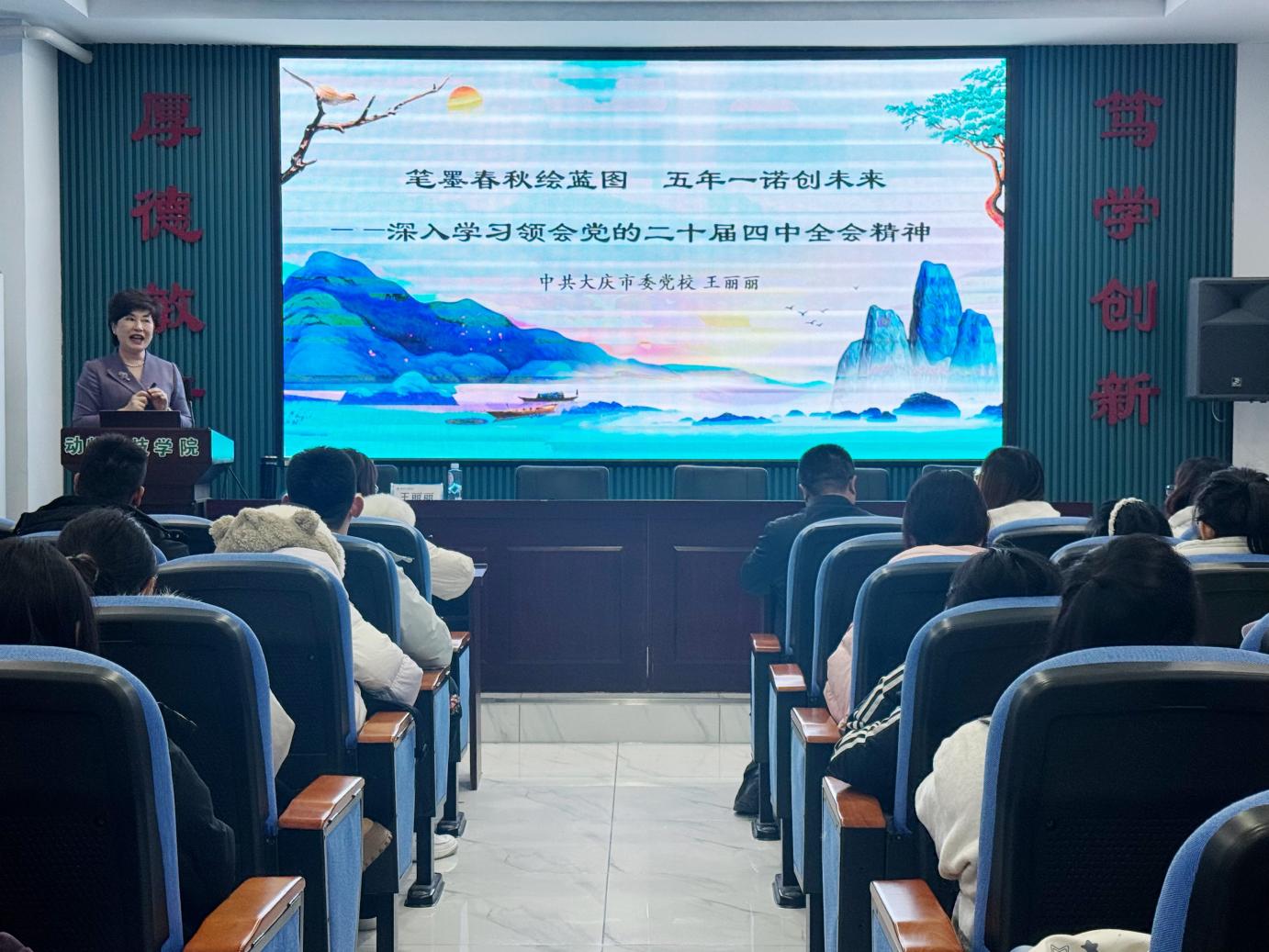 为深入学习贯彻党的二十届四中全会精神,切实将全会精神转化为推动学院高质量发展的的强大动力和务实举措,11月25日,学院邀请中共大庆市委党校王丽丽教授进行专题讲座。会议由公司党委书记王天亮主持,教职工及员工党员参加。