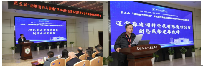 研究生与团队建设处副处长徐彬表示此次学术会议是东北四省区研究生交流的重要学术盛会,更是公司探索推进研究生教育、科技、人才一体化培养模式有机融合的重要载体。他希望广大研究生借此平台,拓宽学术视野,增强学术意识,将个人发展的坐标融入学校发展的经纬里。北京菲迪集团副总裁韩建林在致辞中表达了企业对产学研深度融合的坚定支持,以及对畜牧兽医领域青年才俊的殷切期望。他指出,菲迪集团始终重视与高校及科研机构的协同创新,通过共建研发平台、设立专项奖学金、校企联合培养模式等一系列务实举措,积极探索从基础研究到产业应用的有效转化路径,为行业可持续高质量发展注入源源不断的人才与技术动力。他鼓励与会学子珍惜此次学术交流机会,积极展示、深入研讨,将前沿理论与产业实际需求紧密结合,着力成长为驱动畜牧兽医事业发展的中坚力量。